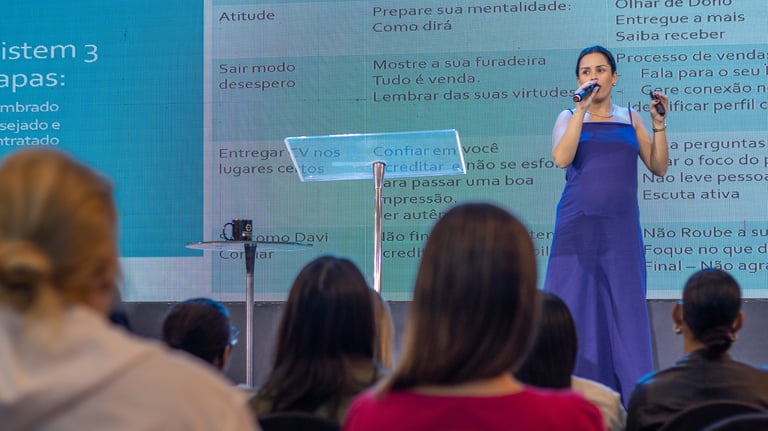 Hoje, casada, mãe e empresária próspera, transformei meus desafios em metodologia exclusiva da EPB, que treina líderes, equipes e mulheres para prosperarem de forma segura e consciente.
